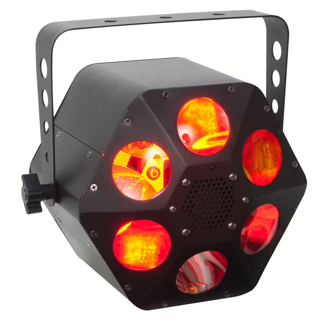 Der Quad Phase HP von ADJ füllt jeden Raum mit rasiermesserscharfen Strahlen und hinterlässt bei Ihrem Publikum einen Wow-Effekt! Dieses technologisch ausgereifte Moonflower-Gerät besitzt ein leistungsstarkes 4-in-1 Quad-LED-Leuchtmittel mit 32 W (RGBW). Während er so viele beeindruckende Farben wie eine "Tri-LED" bietet, erzeugt der Quad Phase HP insgesamt bis zu 15 Farben.